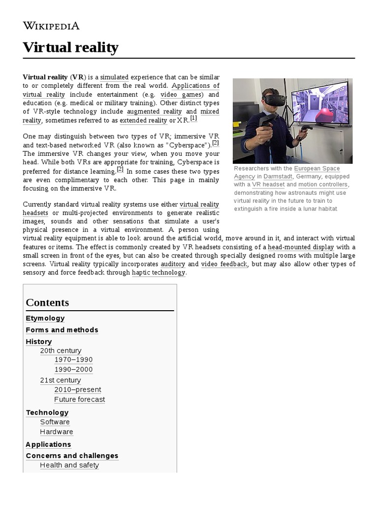 Virtual Reality Virtual Reality Vr Is A Simulated Experience That Can Be Similar Pdf Virtual Reality Illusion